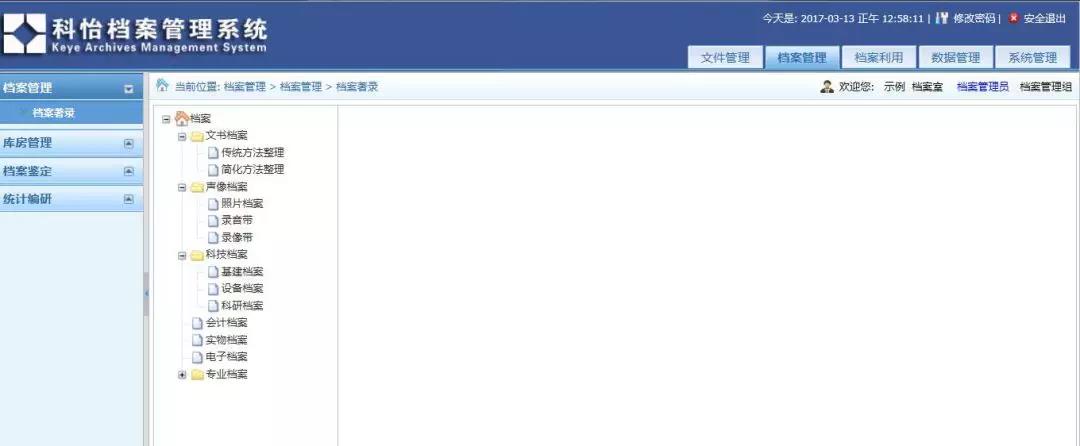 系统采取“一次登记,无限次使用”管理模式,用户只需要录入文件或档案基本信息,由程序来自动完成处理、传阅、查询、组卷、打印乃至销毁等档案室基本业务工作。