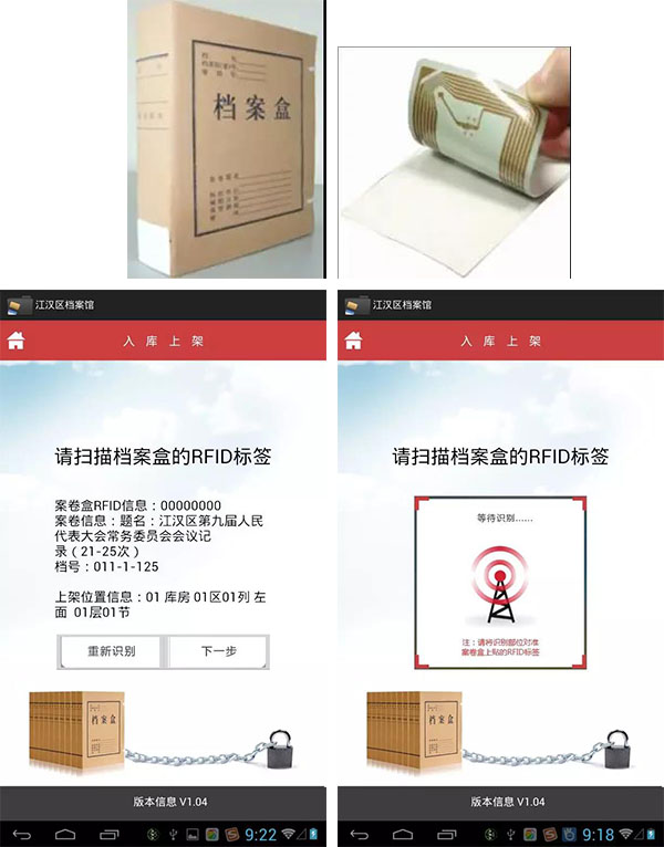 系统采用RFID定位技术,以感应门禁等多种形式,实现实时动态档案实体管理体系。利用移动无线通讯技术,发挥智能手机、平板电脑等移动设备优势,将RFID电子标签与档案实体结合,全程应用于档案的整理、签收、入库、出库、移交、接收、盘点等过程。