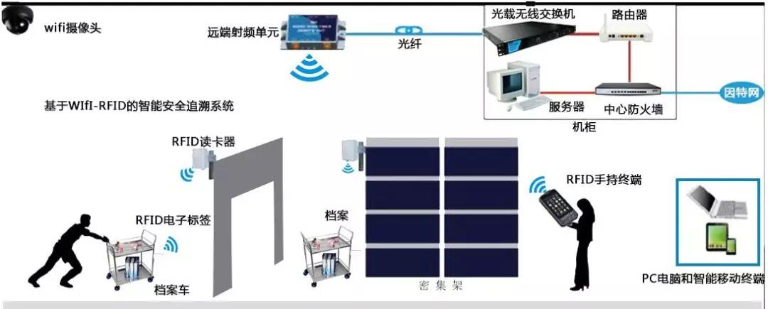 采用物联网技术,非触摸射频RFID技术实现档案快速识别、查找、盘点、借阅;支持手机NFC技术。库房出入口的感应门可进行报警,防止实体档案被随便带出,完善库房的管理,确保档案的安全。